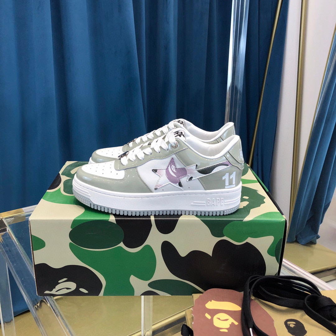 Home BAPE Bape Shoes A Bathing Ape Bape Sta Patent Leather Grey White